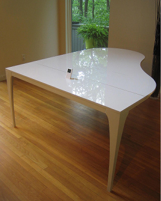 Looking for something special for Memorial Day presents this year? Why don’t you try the Concerto Table? It comes with an iPod dock and two 50 watt speakers…and is shaped like a piano…