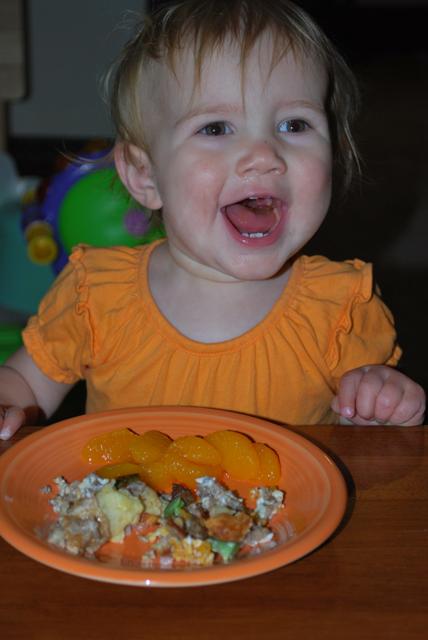 Posted on May 26, 2011 by brooke05.20.11 Dinner Breakfast casserole… …Meg was EXCITED!! (but she still only ate the oranges)