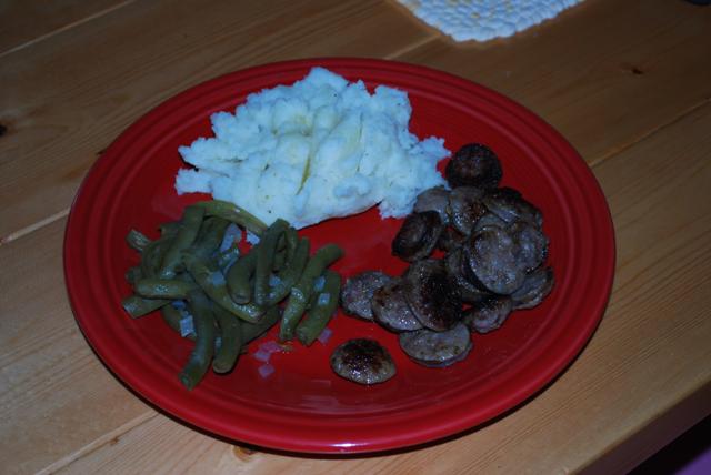 Posted on June 16, 2011 by brooke06.12.11 Dinner Mashed potatoes, Italian sausage, and green beans. An attempt at cheesemaking didn’t work out quite as planned last week, so I’m trying to think of ways to use the result up. The mashed potatoes were a perfect conduit for runny cheese!