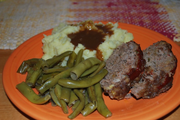 Posted on September 21, 2011 by brooke09.10.11 Dinner I have several dinners to post that Andy’s bugging me about getting up, so here you go!! Meat loaf, mashed potatoes, home grown green beans. Perfect!!!