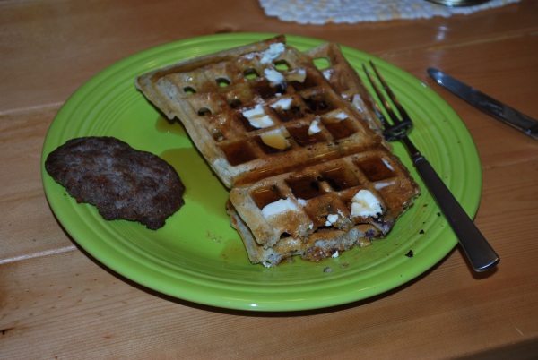 Posted on November 2, 2011 by brooke10.30.11 Dinner Blueberry waffles and sausage. Meg ate two whole waffles (dipped in syrup, of course!)! She still left me with enough to have for breakfast a couple of times, though!