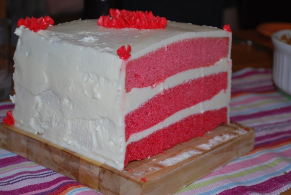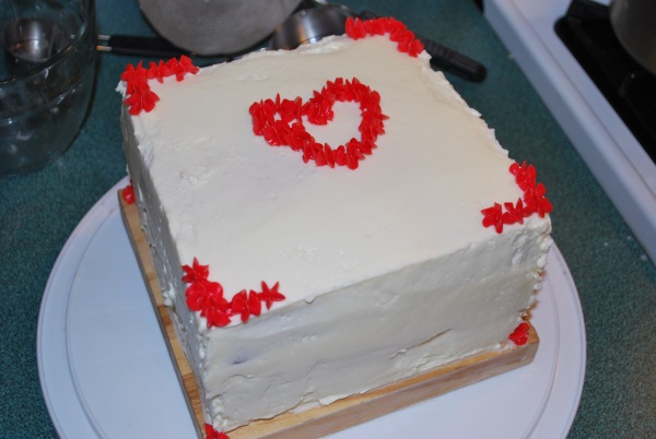 Posted on February 22, 2012 by brooke02.14.12 Dessert I forgot to take a picture of our actual Valentine’s Day dinner, but six of us had pasta, salad, and bread for our “usual” Tuesday night dinner. Then, we had this cake.