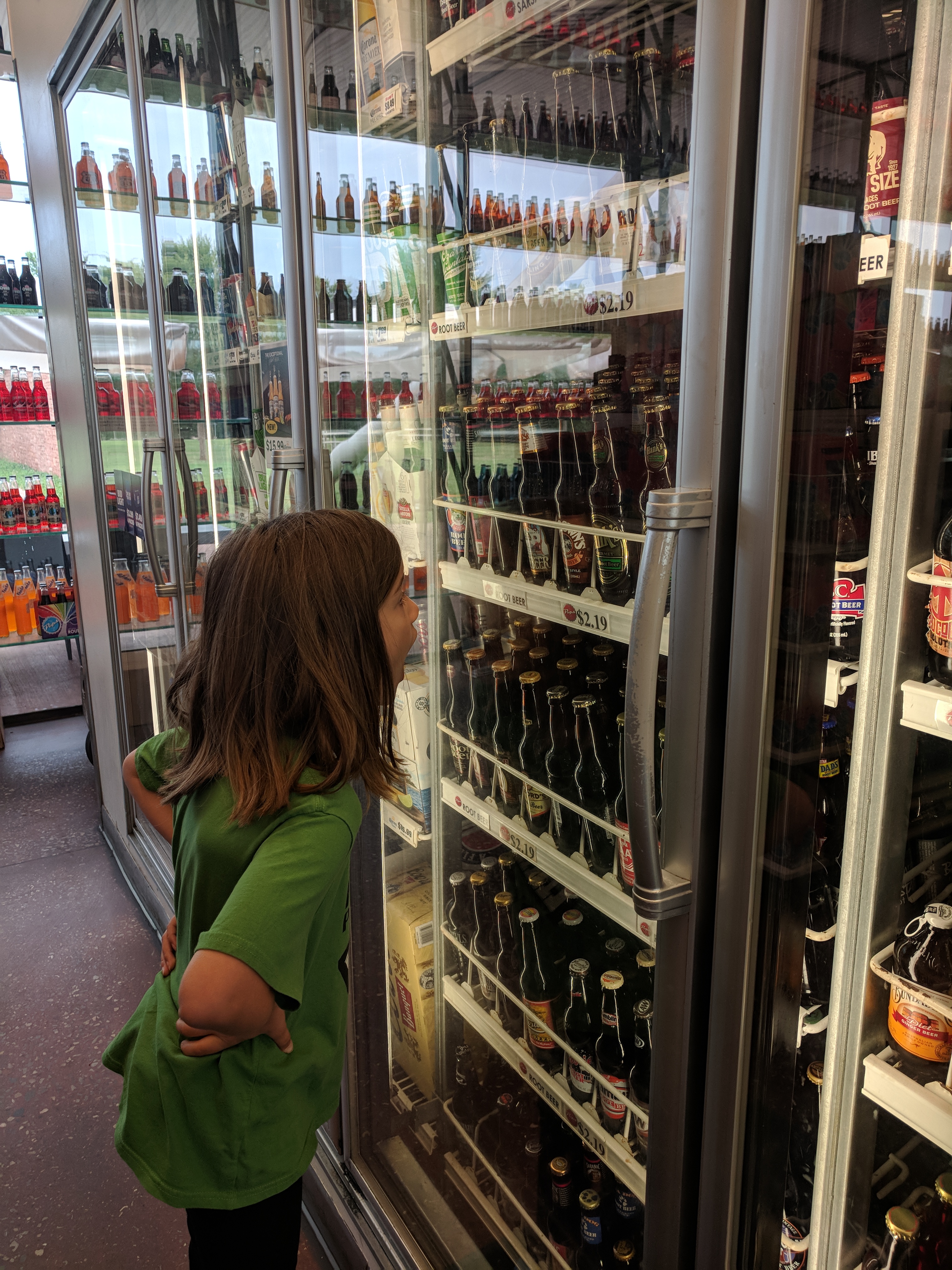 After another late night staying up (with some swimming this time), we hit the road one last time for the home stretch. This time, we were going to stop about 30 minutes outside of Oklahoma City at Pops Soda Ranch, which advertises over 600 different types of soda and other Route 66 kitsch to buy. Meg had never seen this many root beer varieties, so she was pretty excited. We didn’t stay long (and didn’t get gas there, as the price was at least $0.40/gal higher than everywhere else around there), but grabbed a six pack of different glass bottled sodas.