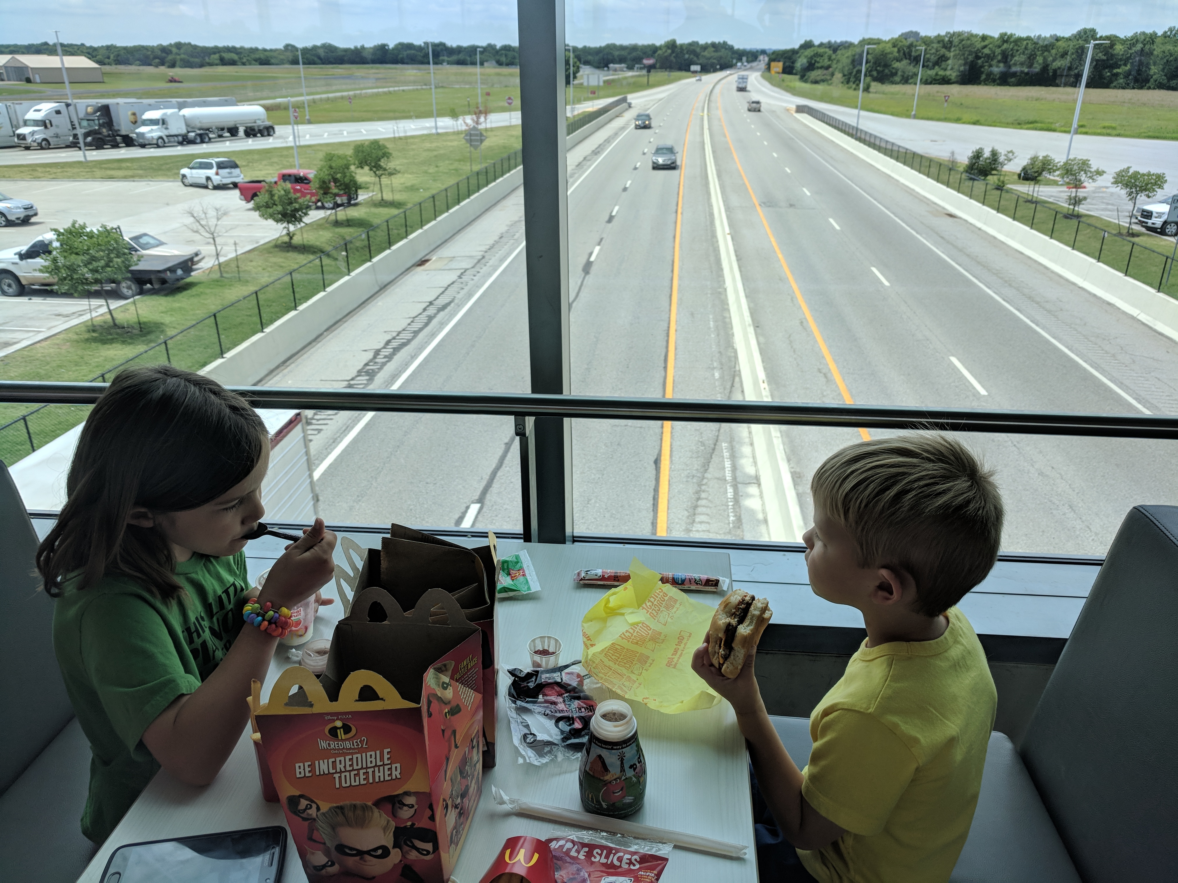 After another few hours, we stopped at the former “World’s Largest McDonald’s” in Vinita, OK, which runs across I-40. It’s a McDonald’s, so not much to report on that, but it was neat for the kids to have a Happy Meal while cars passed under them.