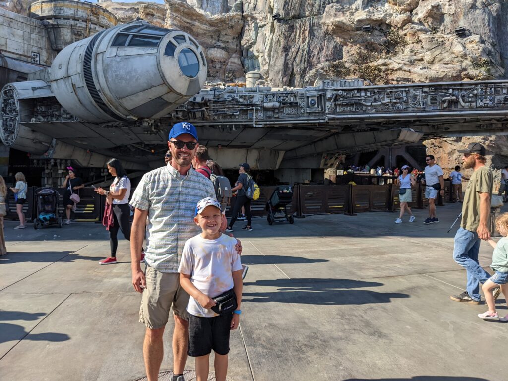 A brief side-bar on Hyperspace Mountain. The day before, when we did Haunted Mansion, Calvin got scared. Dark spaces like that caused him to, oh, freak out a bit. So when we were waiting for Hyperspace Mountain, he worked himself up into a frenzy because a). it’s dark in there, and b). it’s a rollercoaster, and every Disney ride would say “dark spaces with sudden drops,” or something to that effect. We did everything we could to calm him down, but ultimately he started to refuse to get onto the coaster, so the attendant (who’d surely seen this 1000 times…) offered he could cross over to the other side and not actually ride it, waiting for us. He jumped at that chance immediately, so the three of us went on it (and it was awesome), and Calvin waited for us. Later in the day, though, after having ridden other, similar rides, he’d gotten more comfortable with the idea, so he did ultimately ride Hyperspace Mountain, and I think he wished he’d ridden it earlier so he got to ride it twice.