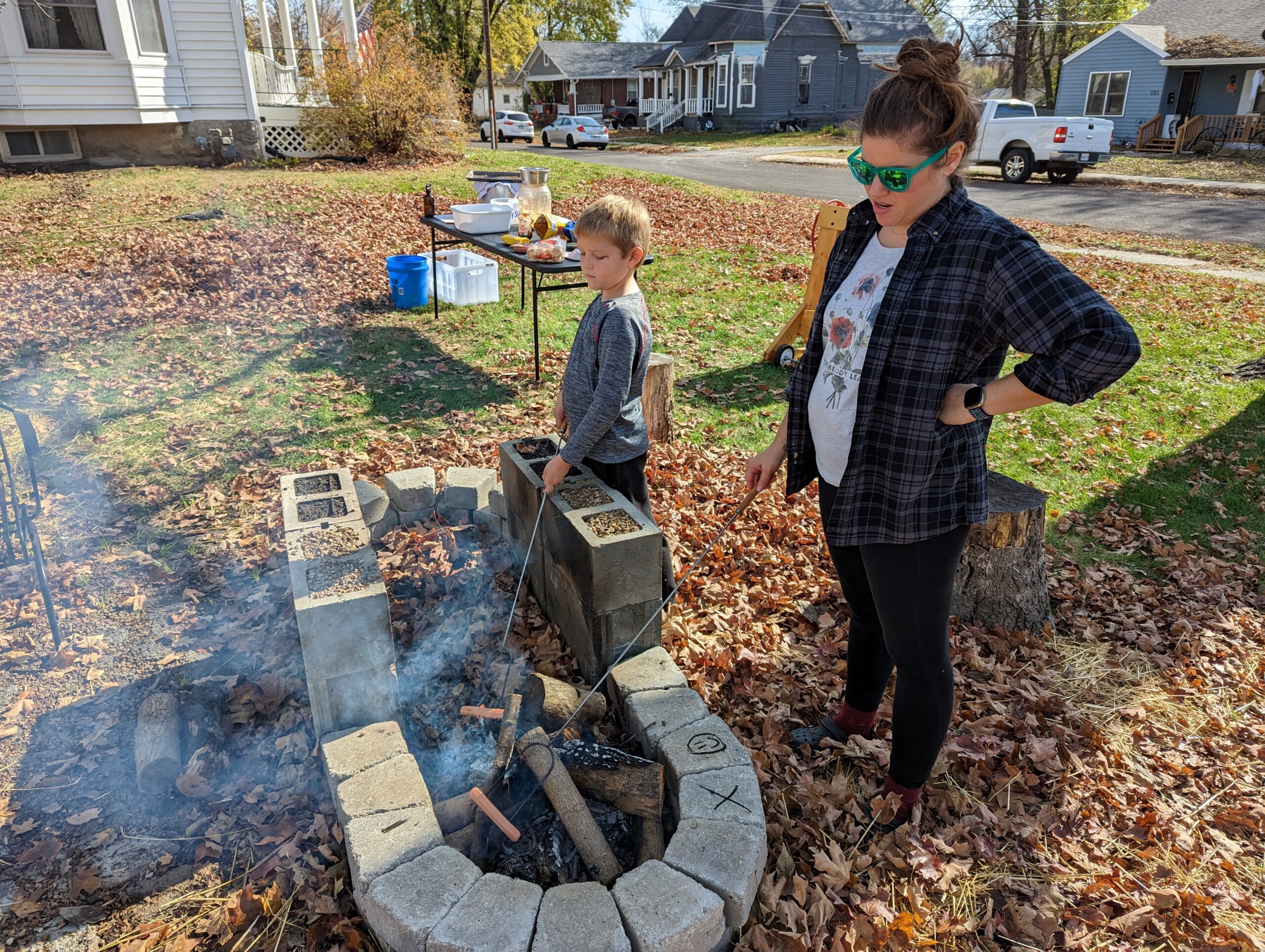 While we were outside, we started up the new fire pit and roasted some hot dogs! We got 1.5″ of rain on Friday, so a lot of the sticks were still pretty moist, making it a bit difficult to get a good fire going. We got something out of it, but it wasn’t quite the roaring fire we were hoping for. Still, it was enough to roast some hot dogs!
