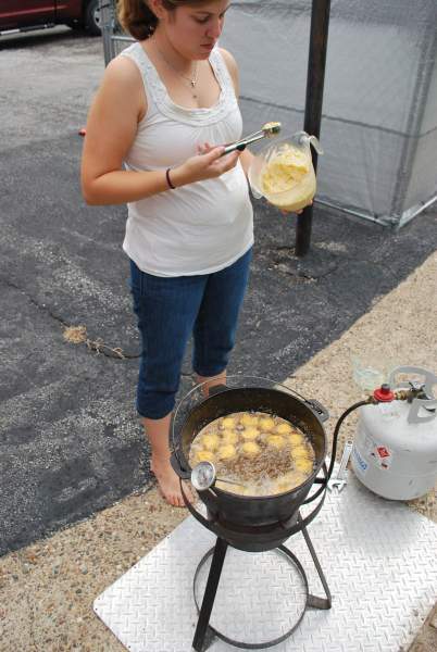 The buffalo fish isn’t one I’d ever had before: it’s the “wavy” one in the picture above. The catfish looked like your typical filet, so nothing too special there…except for the flavor, of course. Brooke also made hushpuppies, and those were pretty spectacular. The hushpuppies didn’t go in until after the fish was done, so as to not mix the flavors too much.