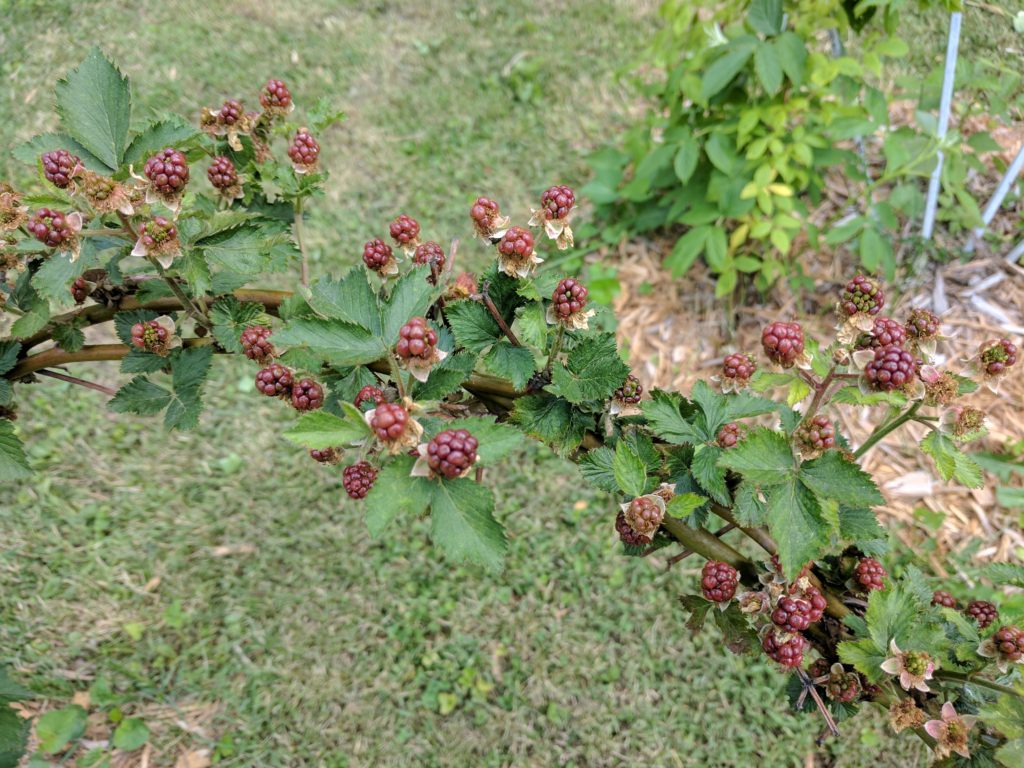 Still, we put in some praying mantids last week in an effort to kill off insect-derived pests while not spraying anything on our flowering green beans, as that would likely affect our bees. We’ll see if it work… We ordered the mantids and put them in a cage (an old bee package) back in late-May and it took almost 3 weeks for them to show up. There were 10s, if not 100, of them in that package before we released them on our green beans, so hopefully they do their jobs.