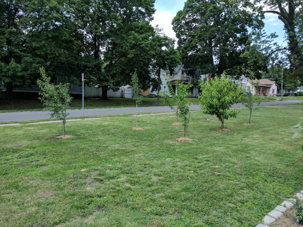 The last thing I wanted to mention was that Japanese Beetles have arrived in Marshall. The two pictured above were on our neighbor’s tree, but we’ve seen them on our trees, too, as well as on our sunflowers. We’ve got multiple leaves that look like those pictured above. Our understanding is that this crop of beetles were spending their time reproducing and laying eggs, all of which will hatch later this summer and wreak havoc. Hopefully, our growing season will be mostly done by then…