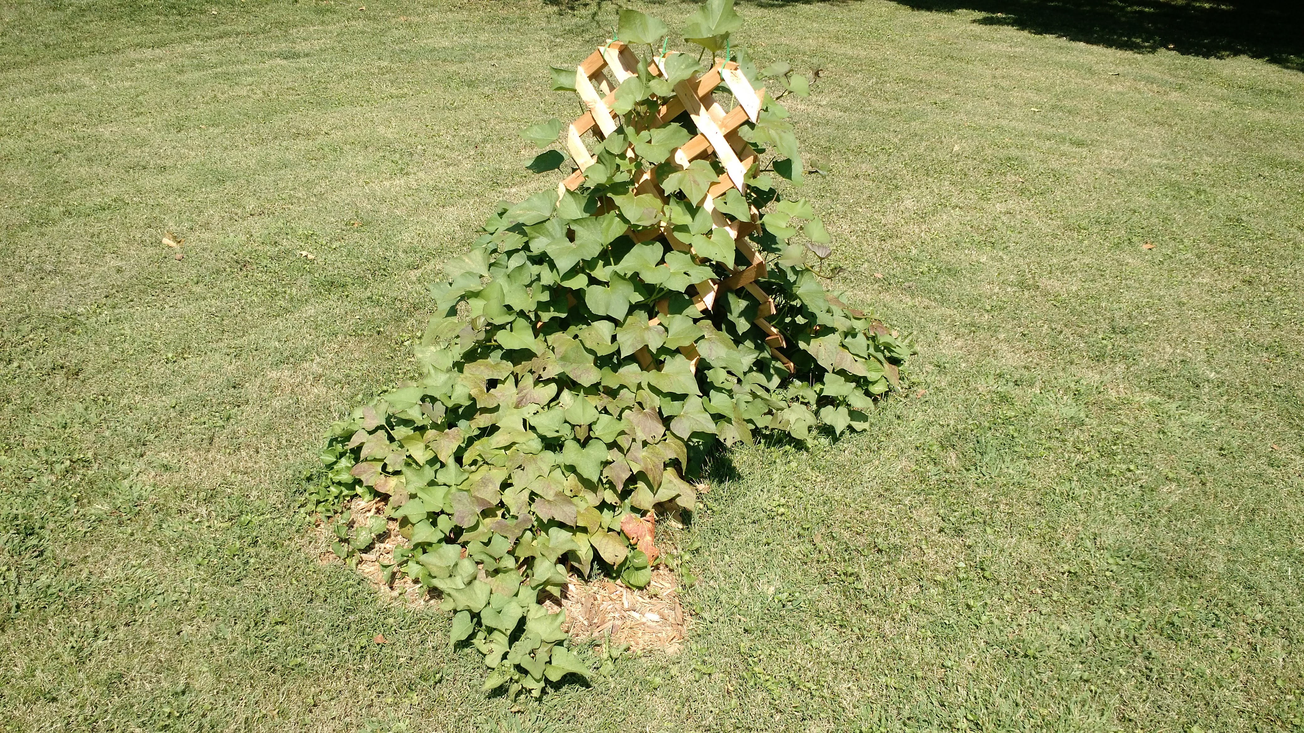 Lastly, the sweet potatoes are still truckin’ along. No actual sweet potatoes to show, but the plants have certainly gotten larger!