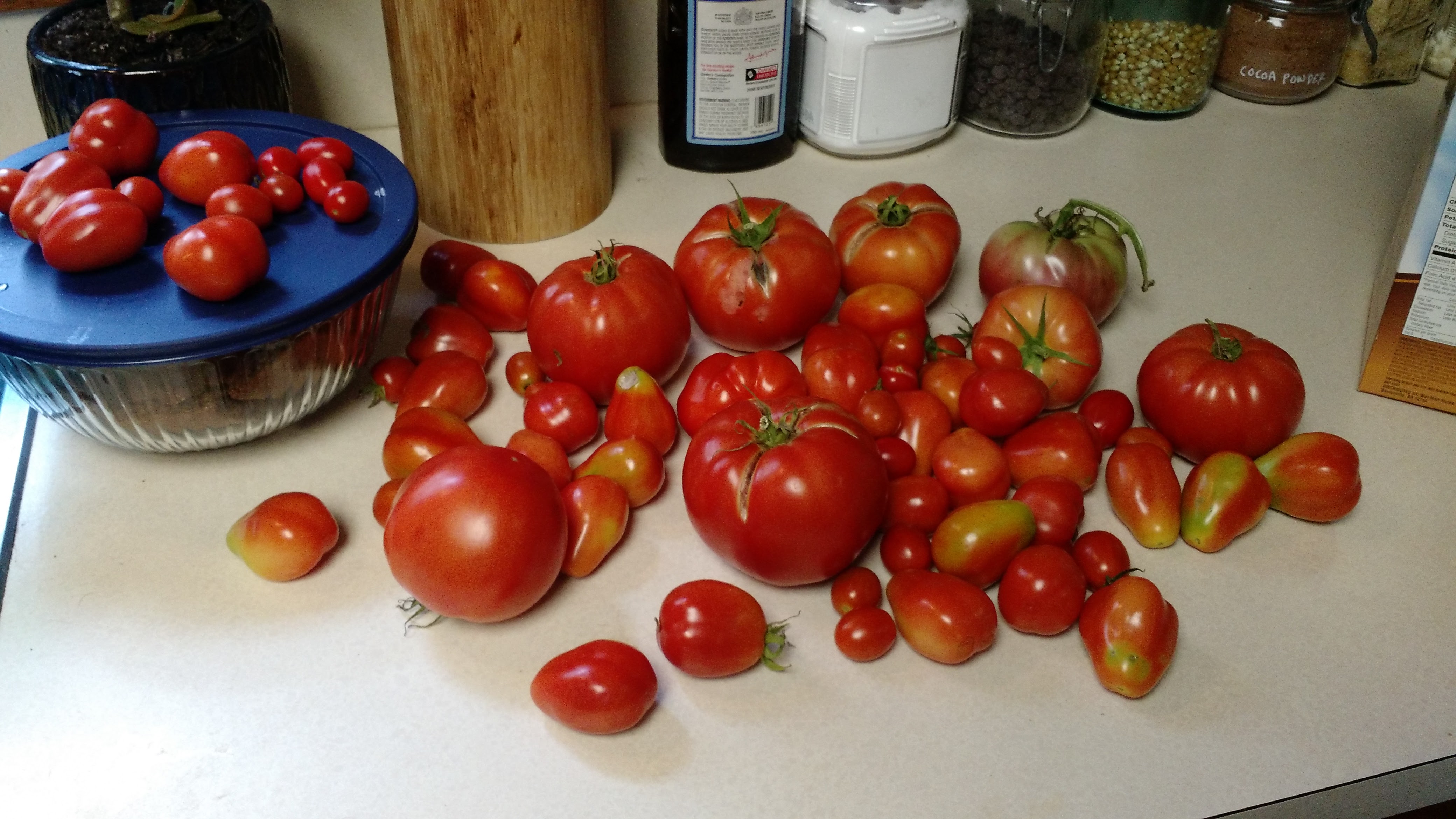Don’t get me wrong, we’ve got a decent number, and we’ve had more than a few good slicing tomatoes. We just haven’t had a huge number of them develop all at once to make it worth Brooke fire up the oven to process and can them. We’ve got lots of little tiny ones still, too, which are great in salads and eating individually, but again, you don’t get much sauce from them. We’ve been trying to water them a bit more judiciously in hopes of keeping them alive long enough to keep developing.
