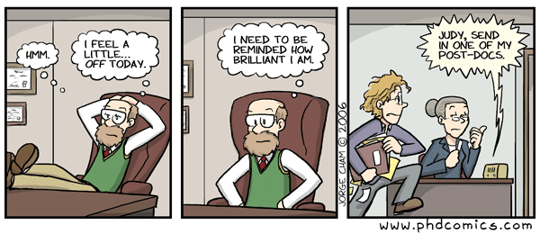 Regardless, I haven’t posted much about how things are going in the lab, largely because there’s not much to tell. I’m learning more and more each week, I’ve presented data to the lab a few times, and I’m gaining more confidence that I’m not a complete idiot (though I still feel like it at times). This environment is definitely different from my experience at SLU and Iowa, though: a far more “Ivy League” mentality about productivity, the quality of other people’s science, and the need to get more funding in order to do high quality work. It certainly isn’t making me want to go into academic research as a career, but it’s nice to get to see it first-hand as I interact with other postdocs and students from around here.