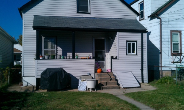 The back yard. Nice covered porch and much, much less grass than I had to mow in Iowa.