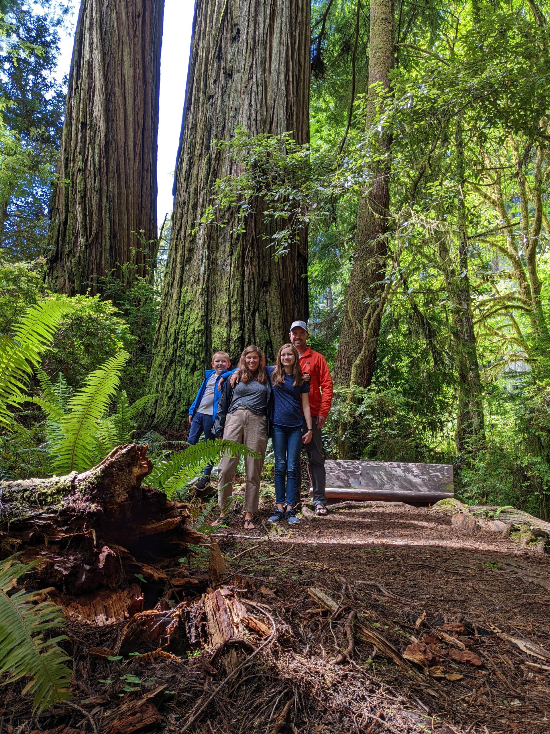 We used Smith River as our “base of operations,” where we could head out and see other things in northern California. We had a few options for how to schedule things, but we wanted to give the kids a “beach day,” more or less, however we figured that Friday would be the better option, so we should see some stuff on Thursday, June 9th. Our first destination was Jedediah Smith Redwoods State Park, which is not a part of the national park, but still has a ton of redwood trees. These are things Brooke and I got to see on our Oregon Trail trip back in 2015, and we thought it was cool enough that the kids should probably seem them at some point.