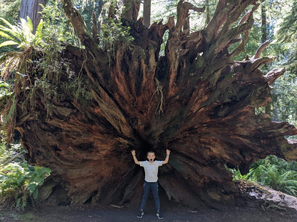 If anything, some of the dead trees we saw were more impressive to the kids, such as this root system from a tree that had fallen over years ago. We’ve got another picture of the kids standing on a stump that’s absolutely gigantic, but I’ve got enough pictures here already, so this is the one you’re getting.
