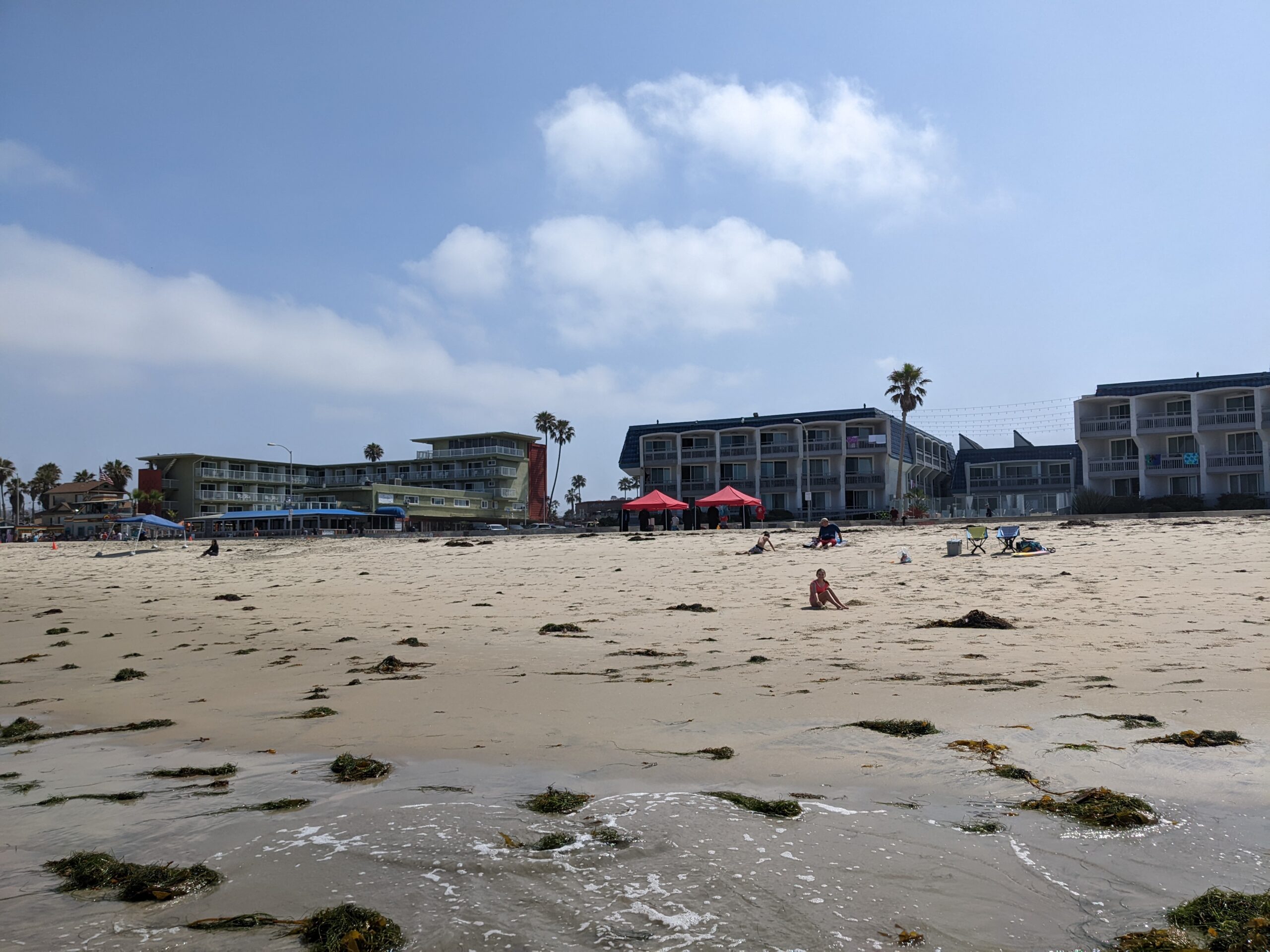 The next day was going to be our last beach day, and being “Sunny Southern California,” we assumed it’ll be nice and warm! Joke’s on us, though, because the high was still 75 F (while it was still in the mid-90s in Missouri! HAH!), so while the Sun was indeed out, making us feel warmer, we still didn’t really want to get in the water!